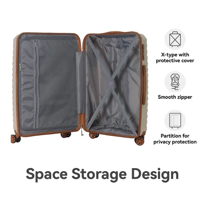 FURNIinspire Bag And Luggage Sets 3 Piece Rolling Suitcase Set, Hard Suitcases With Wheels, Lightweight Travel Luggage, Beige, 21.46″*12.01″*30.51″
