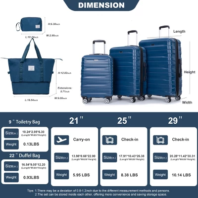 FURNIinspire Bag And Luggage Sets 5 Piece Expandable Hard Shell Suitcase Set Stylish Rolling Travel Luggage For Family, Blue, 20.28″*11.42″*30.31″