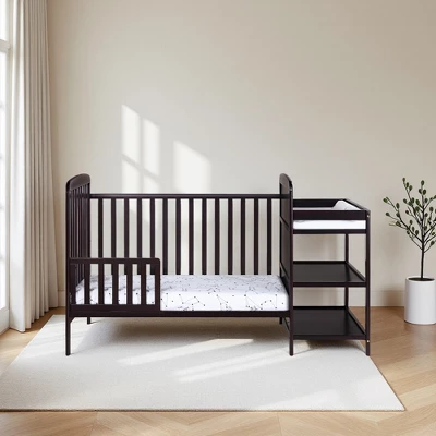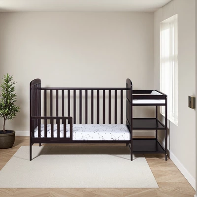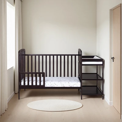 FURNIinspire crib with attached changing table offers parents a stylish and practical nursery solution that maximizes space efficiency. Its clean-lined design comes in four classic finishes to complement any nursery aesthetic. The integrated changing table provides convenient access to baby essentials while maintaining a compact footprint.