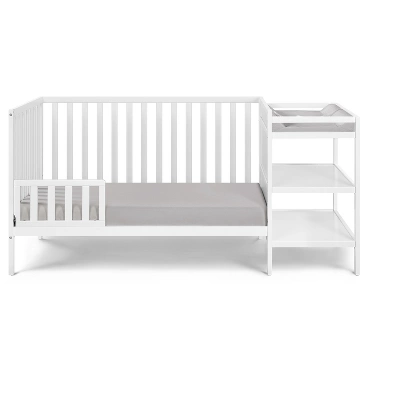 - Space-efficient nursery solution: Combines crib and changing table in one compact unit to maximize functionality while minimizing floor space usage.