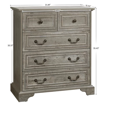 FURNIinspire Dressers 5 Drawers Dresser With Natural Texture, Storage Dressers Organizer For Bedroom, Living Room, Nursery, Gray, 31.5″*15.55″*35.43″