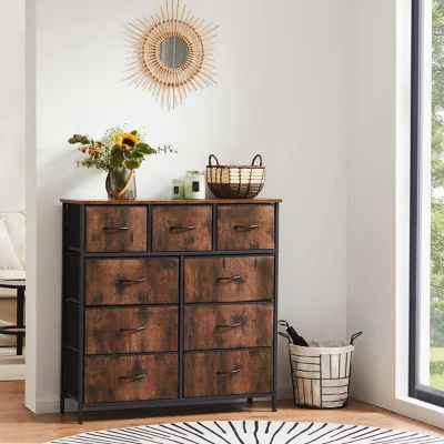 FURNIinspire Dressers 9 Drawer Fabric Tall Dresser Tower Closet Storage Chest Of Drawers For Bedroom Nursery, Brown, 11.8″*39.37″*39.37″