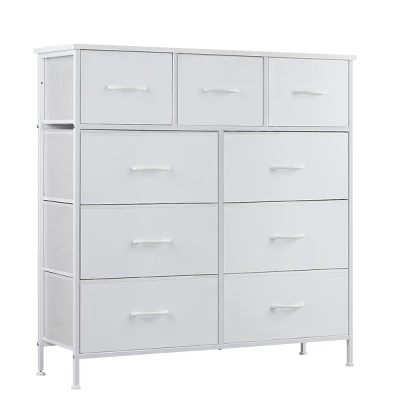 FURNIinspire Dressers 9 Drawer Fabric Tall Dresser Tower Closet Storage Chest Of Drawers For Bedroom Nursery, White, 11.8″*39.37″*39.37″