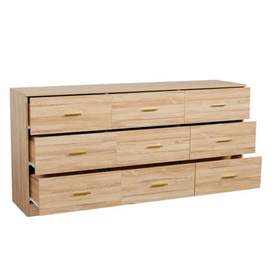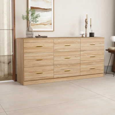 Upgrade your bedroom storage with this elegantly designed 9-drawer dresser that combines functionality with modern sophistication. Each of the nine spacious drawers offers ample storage for clothing, linens, and accessories, helping you maintain an organized and tidy space. Its versatile design fits seamlessly into bedrooms, closets, or even entryways, providing both practicality and aesthetic appeal.