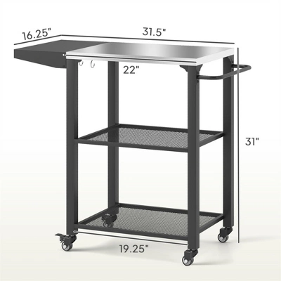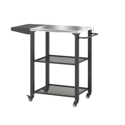 Upgrade your outdoor cooking setup with this heavy-duty stainless steel grill cart, designed for both functionality and durability. The spacious work surface accommodates food prep and serving, while the foldable side table maximizes workspace when needed. Integrated storage hooks and shelves keep grilling essentials organized, and the smooth-rolling casters make repositioning effortless.