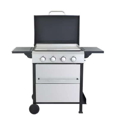 Elevate your outdoor cooking with this professional 4-burner gas grill featuring premium stainless steel construction. The powerful burners deliver restaurant-quality results whether you’re grilling burgers or baking pizzas. The enameled cooking grids maintain perfect heat while the included hanging basket expands your cooking options. Thoughtful details like foldable side tables and easy-roll wheels combine functionality with convenience.