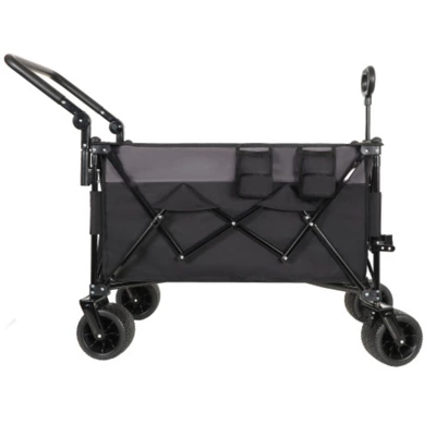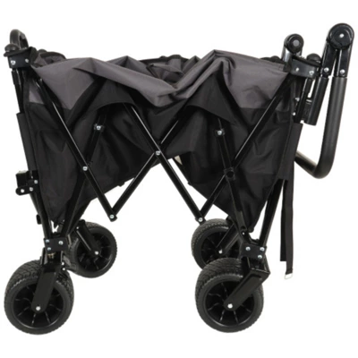 FURNIinspire Outdoor Serving Carts this heavy-duty foldable wagon cart features a patented one-second folding system. Simply pull the strap to deploy the 400L cargo space or collapse it into a compact size for storage—no tools required.Engineered for effortless mobility, the dual-bearing 360° swivel front wheels glide seamlessly over rough terrain, while wide-track rear wheels prevent tipping. The 90° rotating handle adapts to pushing or pulling motions, reducing strain during extended use.