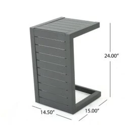 FURNIinspire Patio End Table, C-Shaped Side Table, Compact, Stylish, And Versatile, Gray, 15″*14.5″*24″